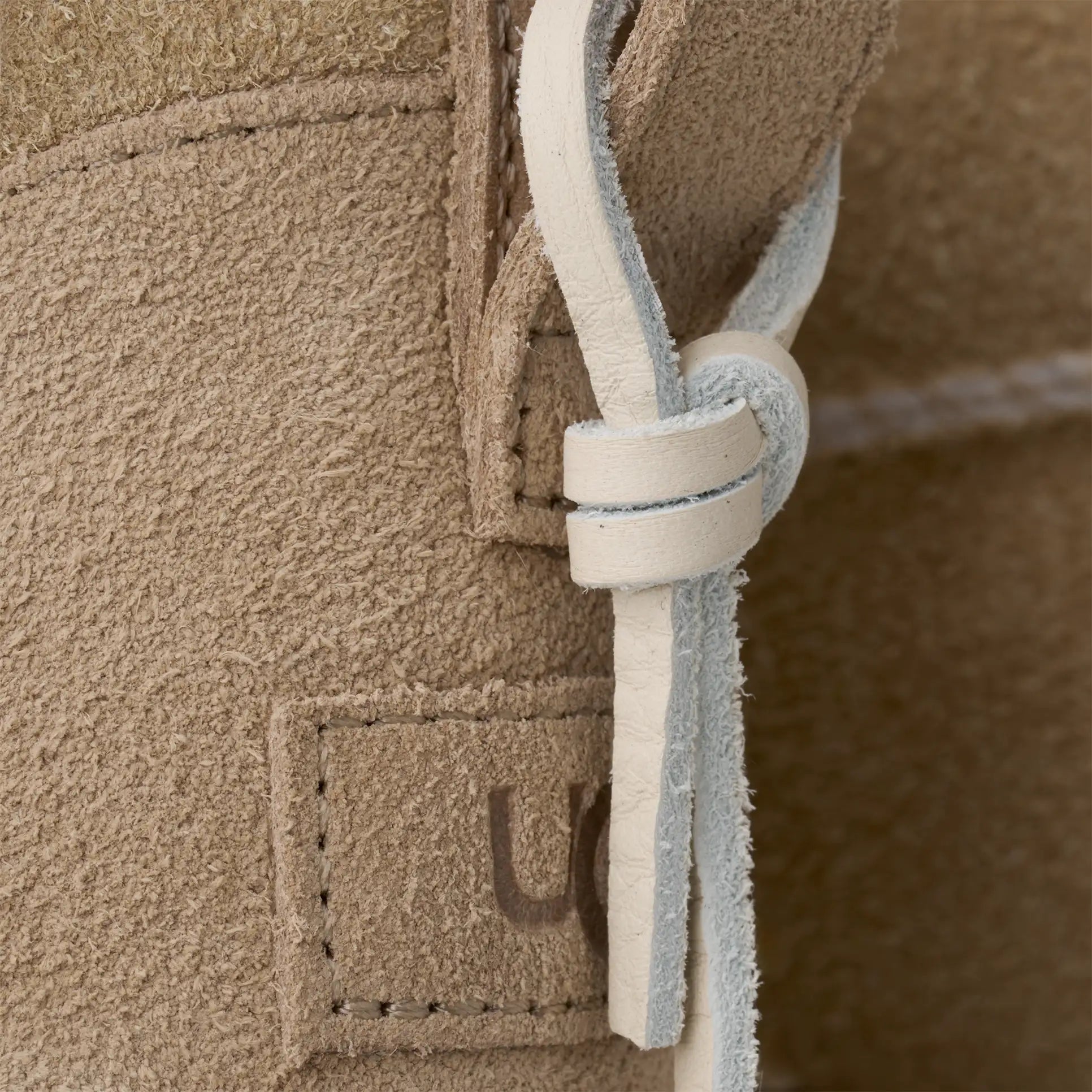 The Classic Ultra Mini Biarritz is a special edition of our beloved Classic Ultra Mini. The perfect style for beach bonfires and casual city strolls. Featuring a textured high-pile suede upper, this boot is finished with signature elements like stitched details and a leather back tassel. The fluffy sheepskin lining offers signature UGG® comfort. The lightweight EVA outsole, derived from sugarcane, offers a slipper-like feel, whether indoors or outdoors.