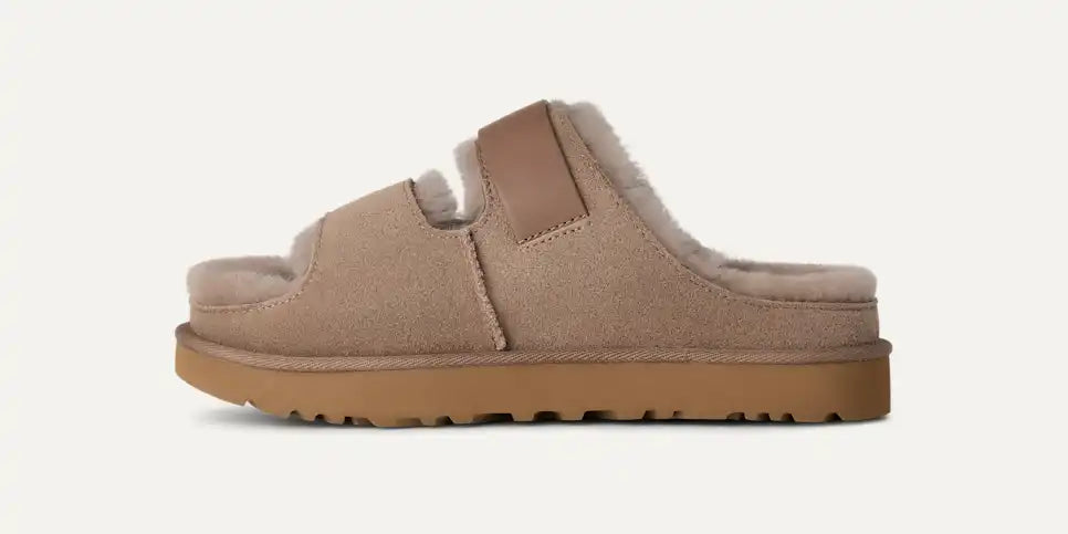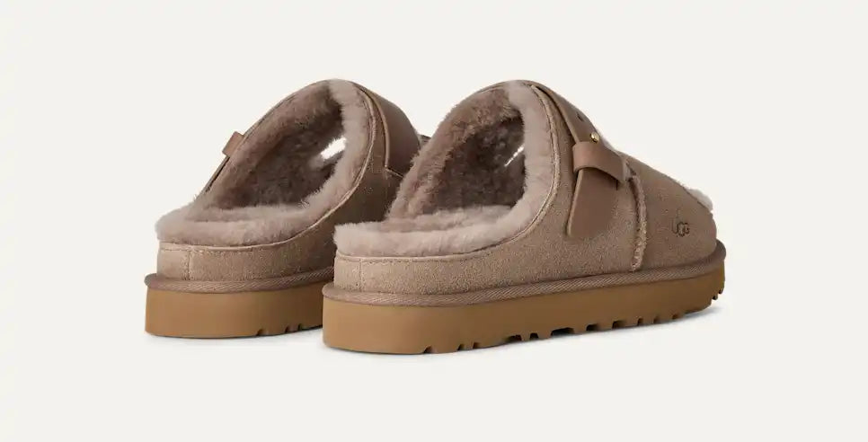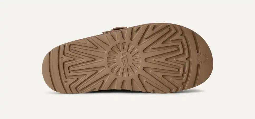 A comfortable mule for year-round wear. With its sheepskin lining and suede upper, the Greenport strap mule is a shoe you can wear all year round. Enjoy signature UGG® comfort, thanks to a lightweight EVA outsole derived from sugarcane that's ideal for lazy days at home or walks outside. We love wearing this style barefoot in the summer and with socks when the temperatures drop. With its Twin Seam and topstitched trim, this mule will become an UGG® classic.