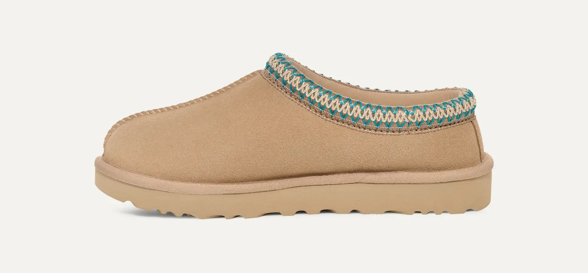 An all-day bootie, our legendary Tasman features the same lightweight, durable outsole as our Classic boot so you can wear it indoors or out. This practical slip-on style is crafted from soft suede, lined with plush natural wool, and finished with an embroidered Tasman braid. Pair with boyfriend jeans and a knit sweater.
