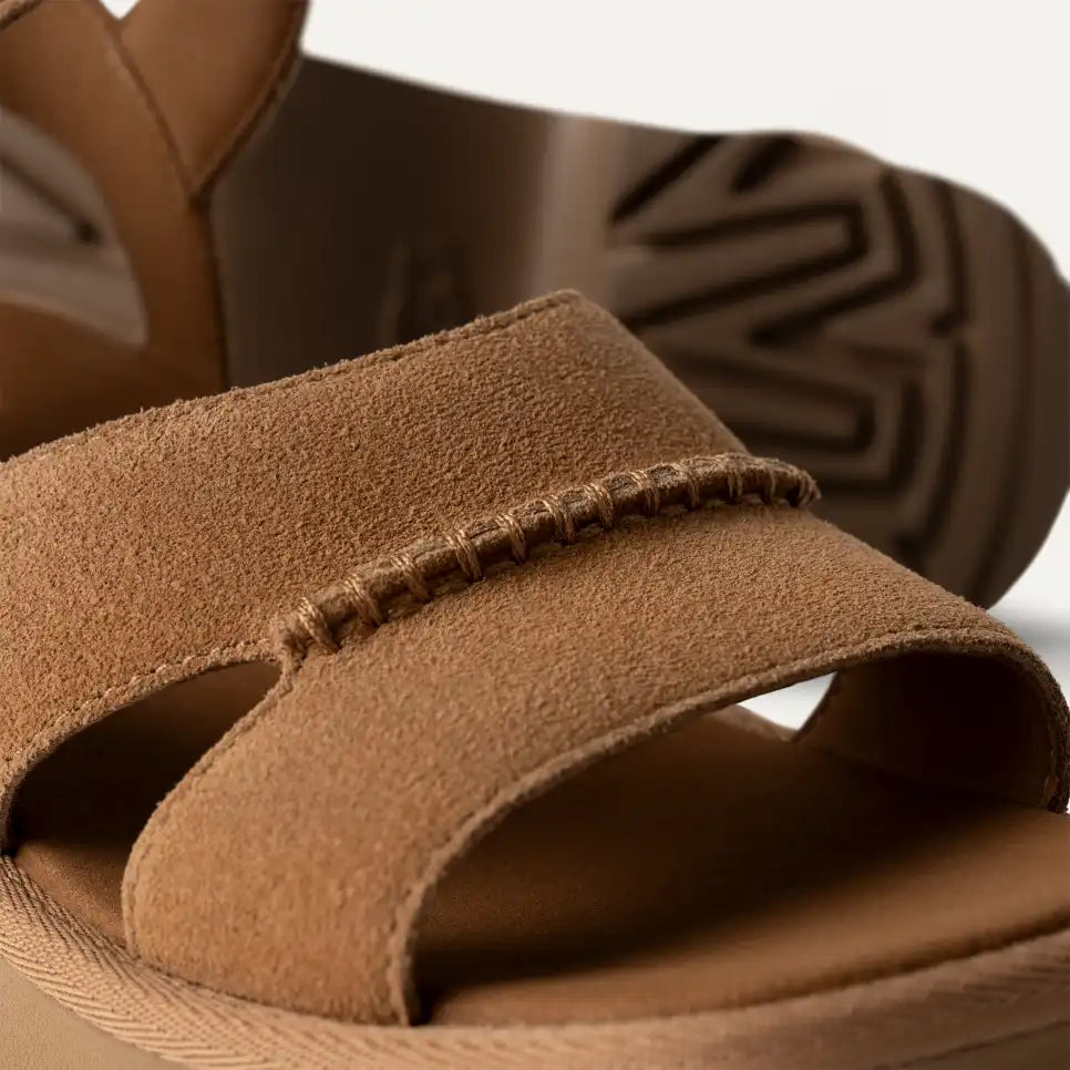 Planifiez votre voyage. Idéale en été, la New Heights à lanière à la cheville comporte une semelle ultralégère à plateforme fabriquée en canne à sucre renouvelable misant sur le confort et la sophistication. Ces sandales présentent également la Twin Seam et un bout carré. Que ce soit pour assister à un mariage ou à une soirée, la New Heights à lanière à la cheville sera au rendez-vous.