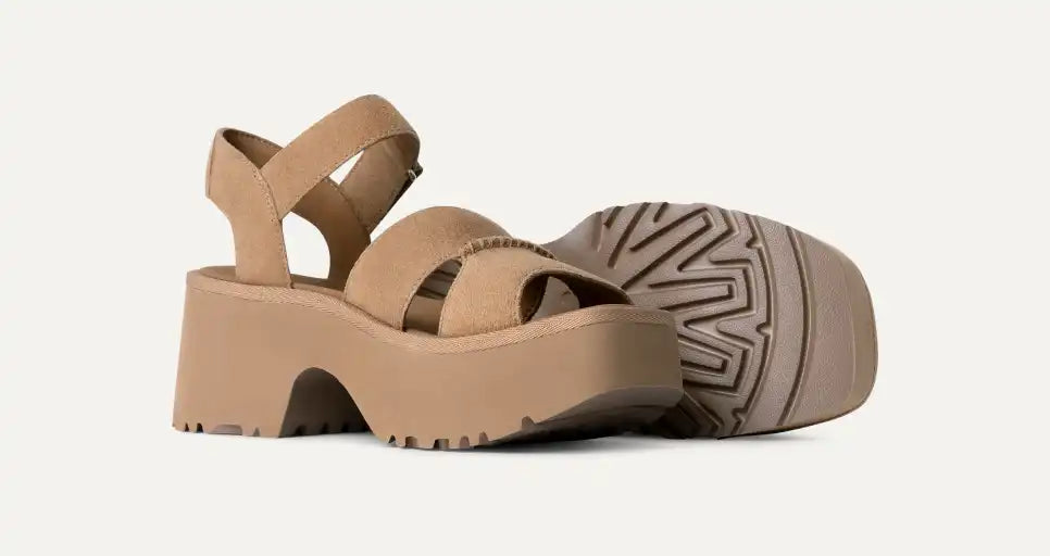 Planifiez votre voyage. Idéale en été, la New Heights à lanière à la cheville comporte une semelle ultralégère à plateforme fabriquée en canne à sucre renouvelable misant sur le confort et la sophistication. Ces sandales présentent également la Twin Seam et un bout carré. Que ce soit pour assister à un mariage ou à une soirée, la New Heights à lanière à la cheville sera au rendez-vous.